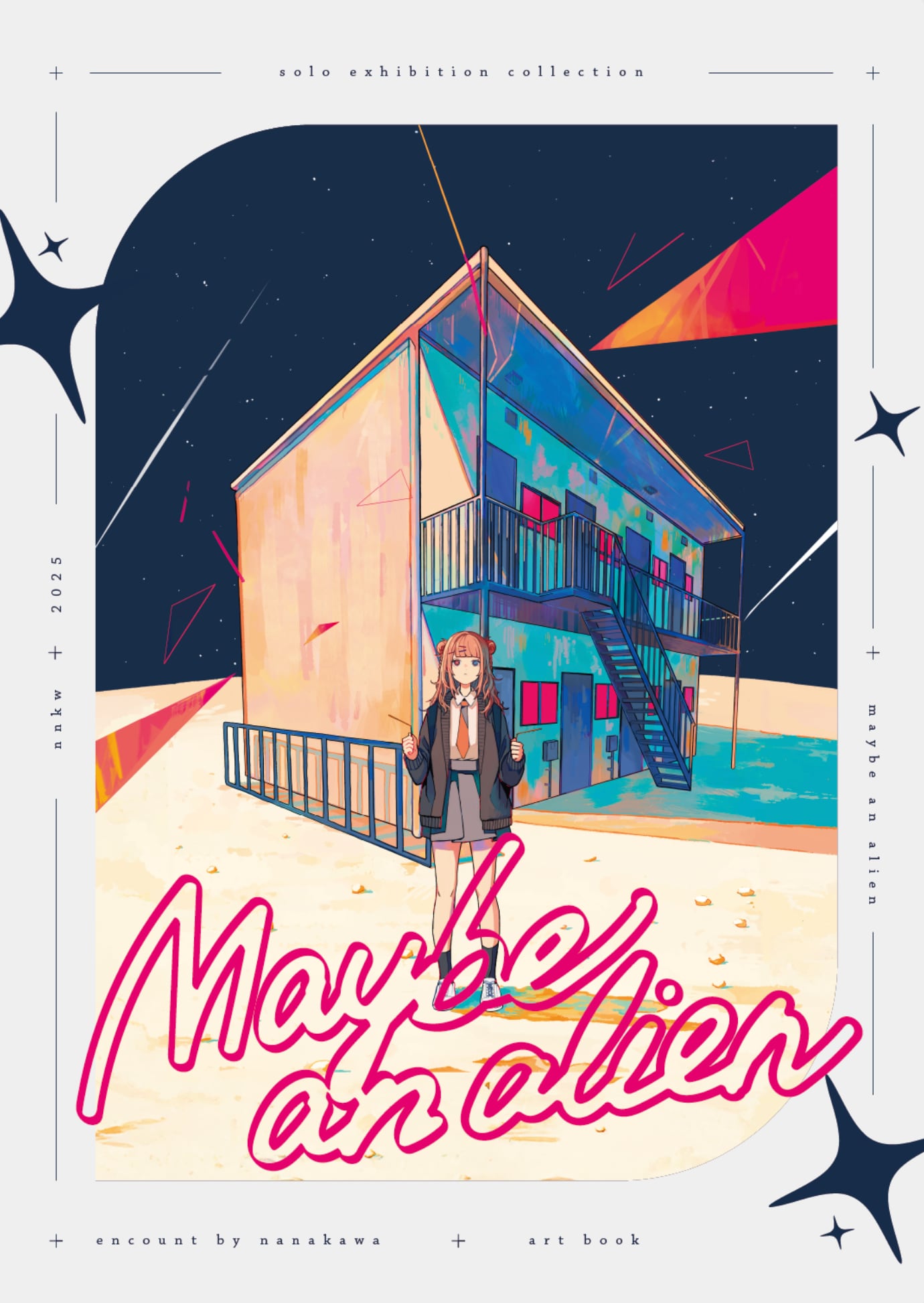 2025年春に開催されたナナカワ氏の個展「たぶんエイリアン」のために描き下ろされた作品をすべて収録した、ファン必携のアートブックです。美しいイラスト作品の数々はもちろんのこと、貴重な制作メイキングや、個展当日の展示風景の写真などもたっぷりと収められています。
